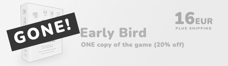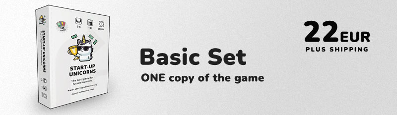 As the players take their fledging startup from its birth to success as unicorn, the game creates a friendly environment for introducing relevant themes of team building, synergy, cash management, adversity, valuation and raising capital, mismanagement, sheer luck, and a lot of the necessary ingredients for turning a product idea into reality (in this day and age!),